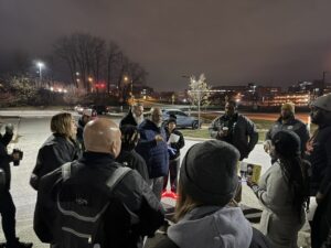 The show of force took place at Akron’s Robert K. Pfaff Transit Center on Thursday before a Metro board meeting there. Nearly three dozen Local 1 Bus Operators, Vehicle Service Workers, and Clerical Workers, along with TWU International staff, handed out hundreds of flyers. Every half hour, dozens of Bus Operators honked their horns as they left the transit center to spread out across the Akron area.