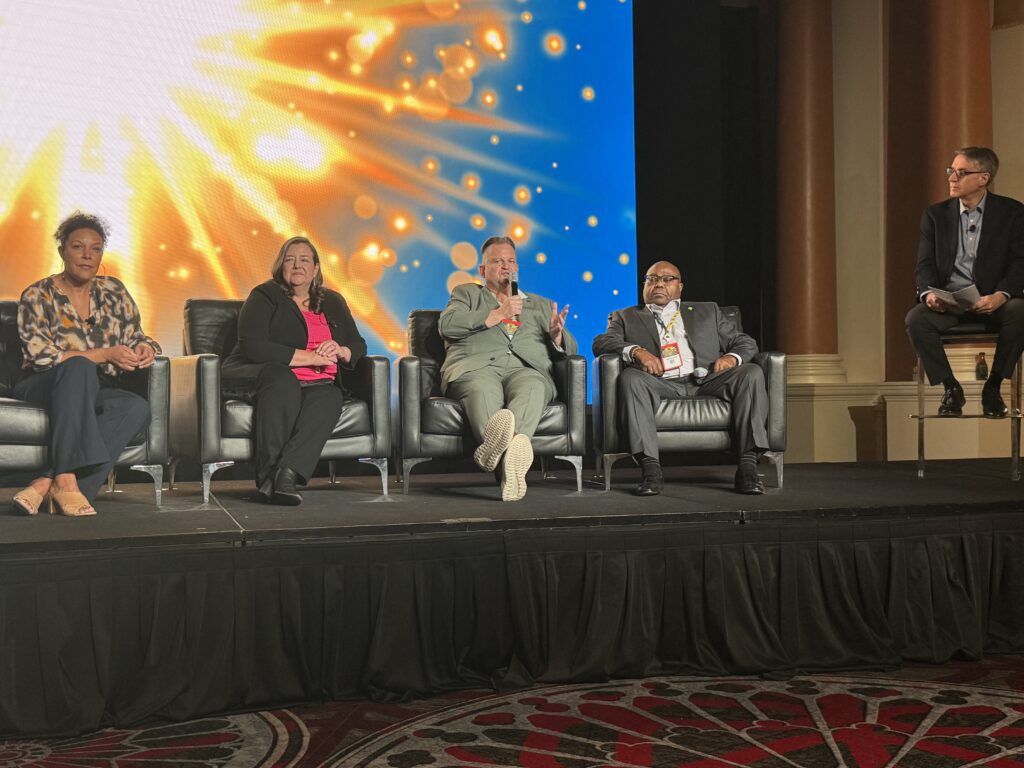 TWU International President John Samuelsen and Administrative Vice President Curtis Tate sat down with SAG-AFTRA Executive Vice President Linda Powell and Chief Labor Policy Officer and New York Local Executive Director Rebecca Damon for a discussion moderated by Ed Wytkind. Samuelsen said that successful fights on tech issues like the expansion of autonomous transportation systems and on entertainment issues like AI being used to replace working actors start with winning good contracts.